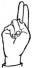 На ћирилици написано МАРИЈА МРЂЕН састоји се из 11 слова [?]. Исписано ћириличном једноручном азбуком за глувонеме: